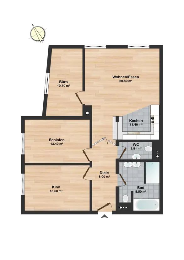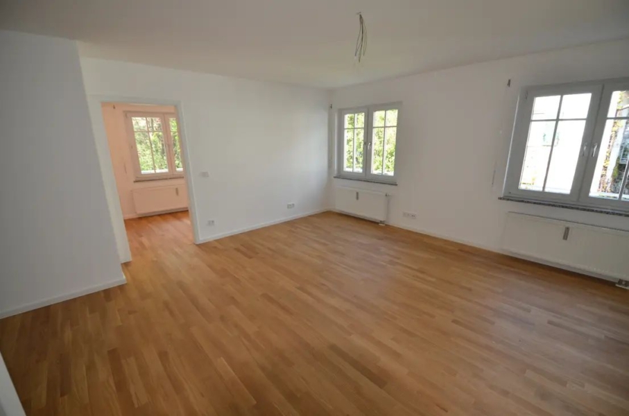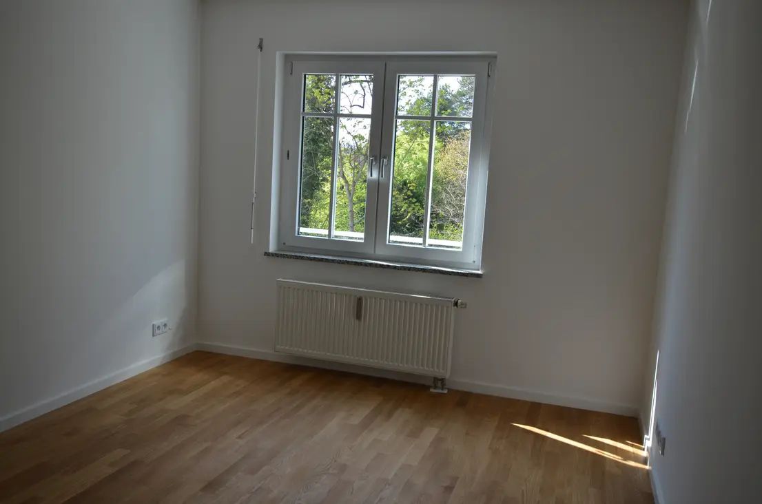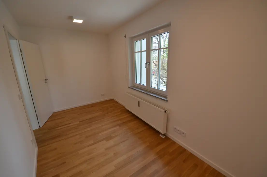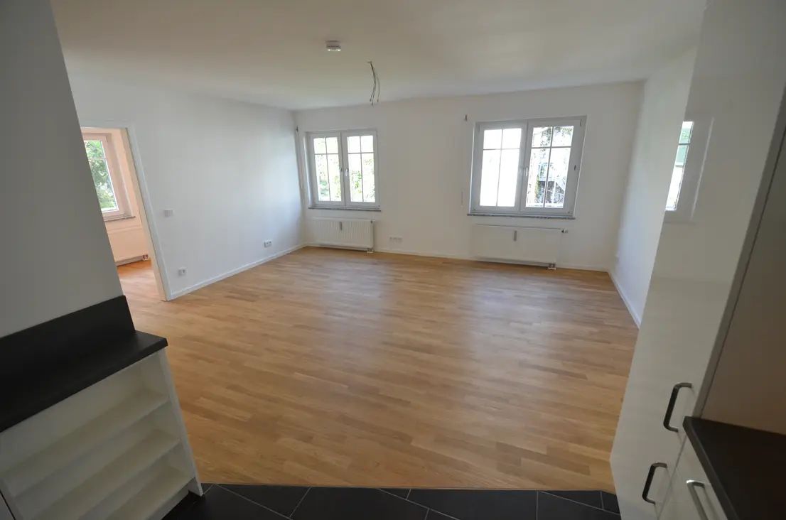 Der Grundriss der Wohnung ist durchdacht. Ausreichend dimensionierte Fenster machen die Räume angenehm hell. Auch der Flur erhält Tageslicht dank der gläsernen Trenntüre. Die Räume bieten hinreichend Stellmöglichkeiten, um auch größere Möbel dezent aufstellen zu können.